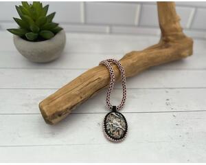 Beaded Necklace with White Marble Pendant, Herringbone Stitch...