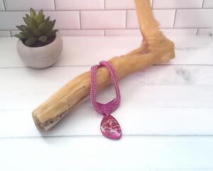 Dark Pink Jasper Pendant on CRAW Beaded Necklace, Nickel Free...