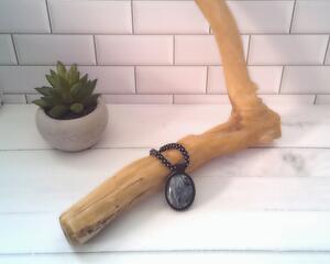 Black and Grey Beaded Necklace with Bead Wrapped Acrylic Pend...