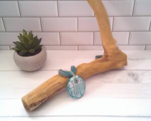 Teal and Silver Glass Pendant Necklace, Beaded Necklace, Nick...